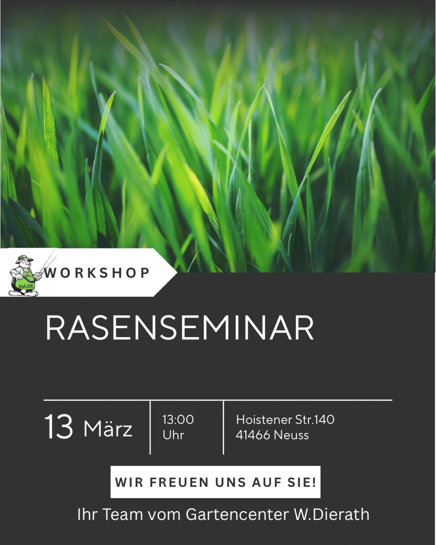 Erfahren Sie in unserem kostenlosen Rasenseminar, wie Sie Ihren Rasen richtig pflegen – von der Aussaat bis zur optimalen Pflege.
